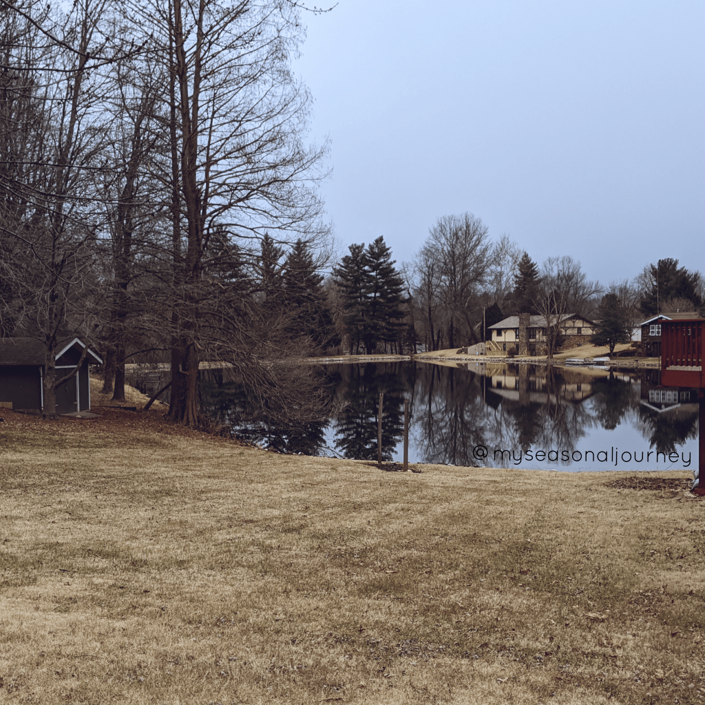 Remember when I said the neighborhood felt like we were on vacation? How do you beat this? It is a dammed up creek, which is a little sad, but it is being used as habitat today by fish, frogs, turtles, ducks, herons, and others I haven’t seen yet. I just absolutely love seeing this everyday. So far, the pond is stunning in Fall and Winter, but I can’t wait to see her in Spring and Summer as well.