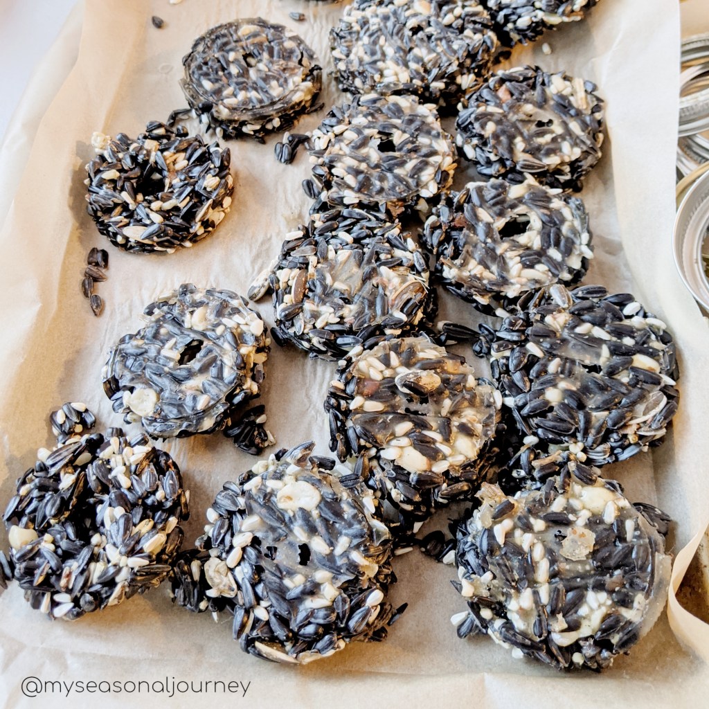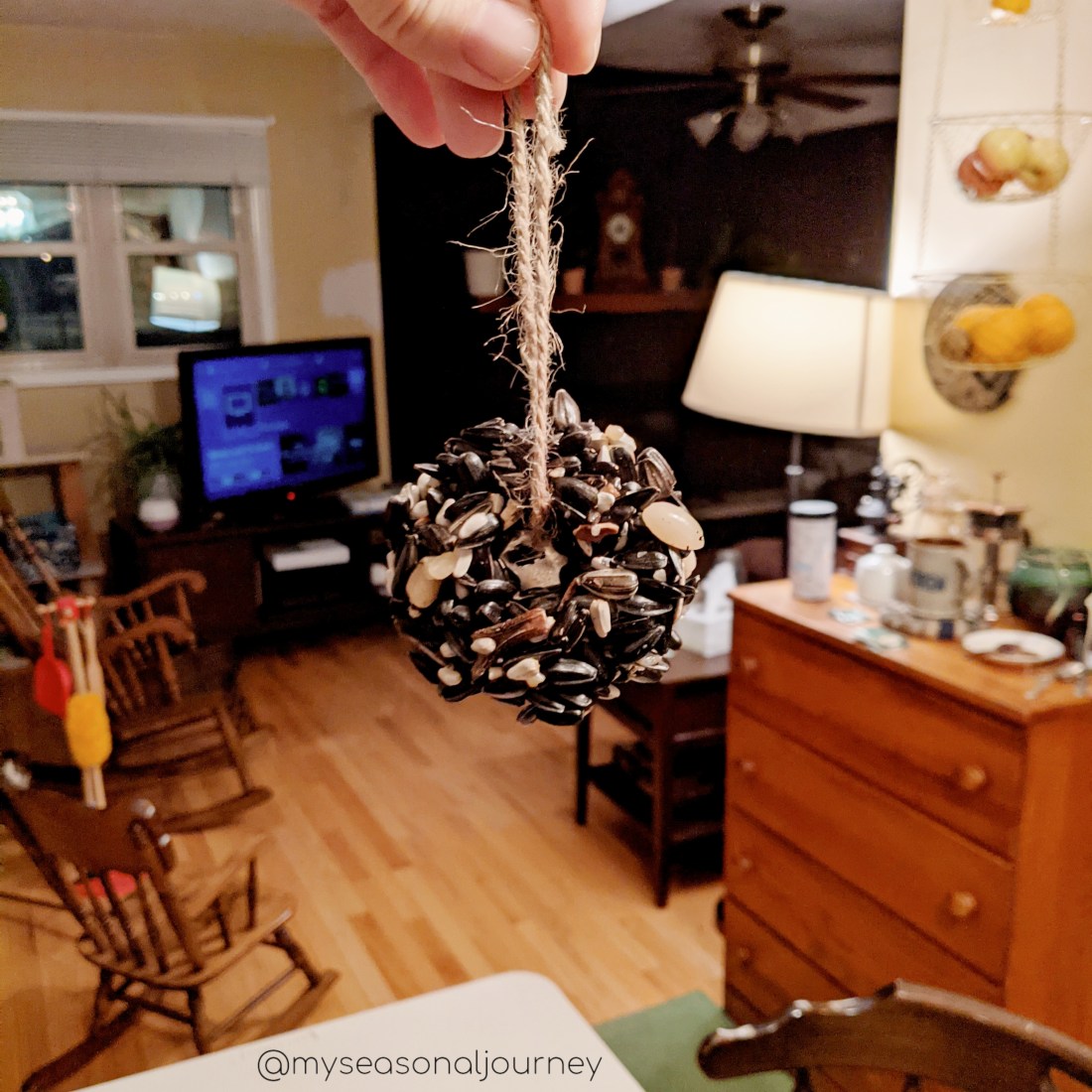 This year, I wanted to find a craft I could do with my daughter to mark the Winter season and this one is practical as well, which is one of my favorite things. As discussed in my previous post, I have a hard time with this season. Cold and dark and gray make me gloomy, and Imbolc does not feel like Spring here. So, I decided to attempt to embrace the season we are in and make a bird seed craft for the birds (and squirrels) in the Winter. I got this idea from Pinterest from the witch and wand.